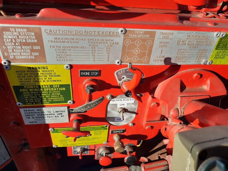 - Instrumentation: Basic instrument cluster covering speedometer, engine temperature, oil pressure, charging system and fuel level; switches and controls are straightforward and military-standard for ease of use and repair.