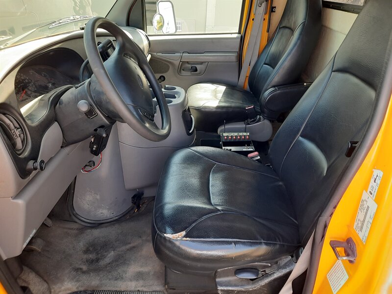 - Standard seating for driver and front passenger(s) with cloth or vinyl upholstery depending on original trim; many E-450s were fitted with vinyl for easy maintenance.