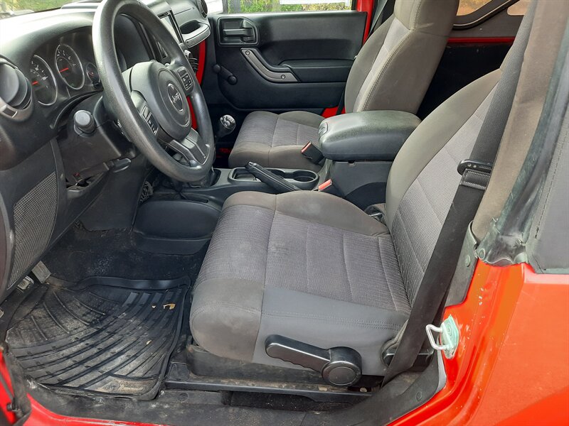 Inside, the Wrangler Sport offers a functional and straightforward cabin layout. The durable cloth seating is designed for comfort during both short drives and extended journeys. The front seats are manually adjustable, allowing for personalized comfort. The interior also includes a 60/40 split-folding rear seat, providing flexibility in cargo space when needed.