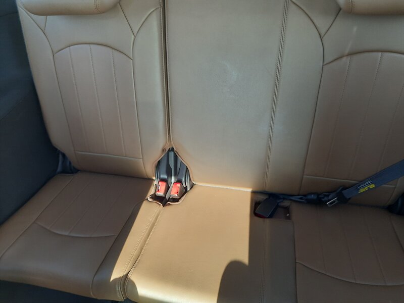 Inside, the Enclave Leather offers a spacious and inviting cabin that accommodates up to seven passengers. Premium leather upholstery enhances the interior comfort, and heated front seats provide added warmth during colder months. The driver-focused cockpit includes an eight-way power-adjustable driver's seat and a four-way power-adjustable front passenger seat, ensuring that both driver and passenger can find their ideal seating position.