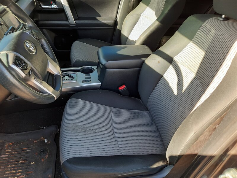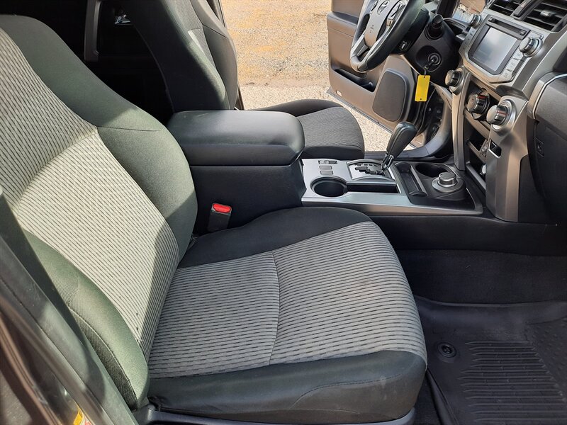 Inside, the 4Runner SR5 offers a spacious cabin designed for comfort and convenience. The seating can accommodate up to five passengers, featuring high-quality fabric upholstery. The front seats are adjustable, ensuring a personalized fit for drivers and passengers alike. The rear seats can fold flat, providing additional cargo space for larger items.